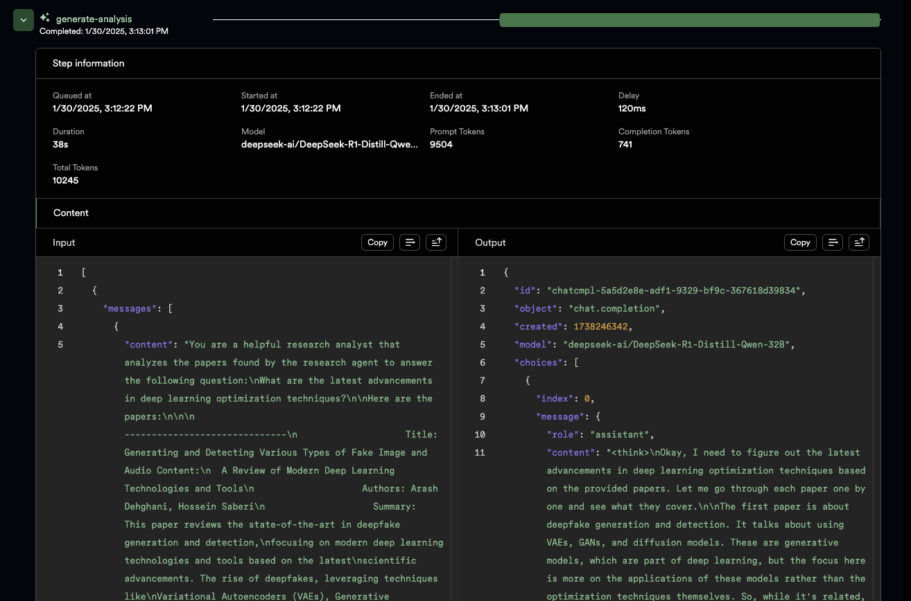 • An Agentic arXiv Research Assistant uses DeepSeek R1's agentic reasoning combined with its large context window capability over arXiv's open access interoperability.